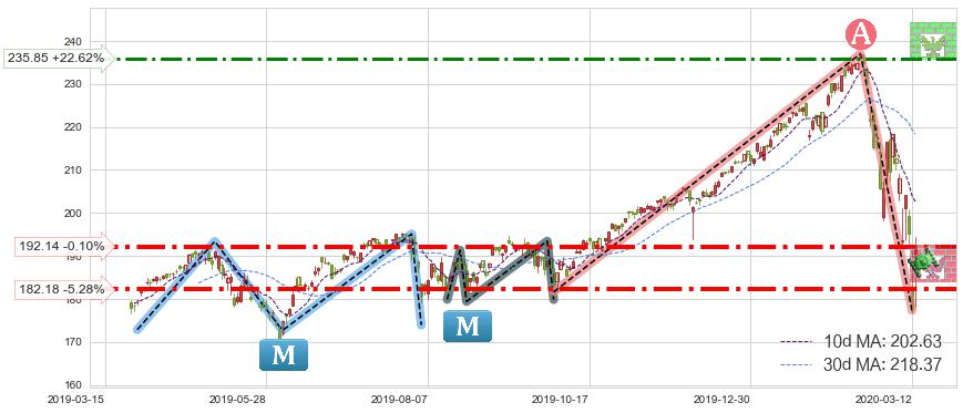 ♘ 支撑价格位182.18,可信任强度73.01%,距离最后交易2020-03-13形成的收盘价格192.34相差 -5.28%