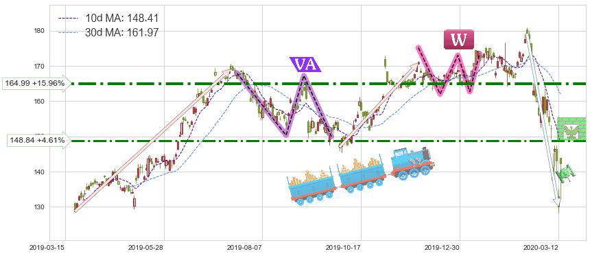 ♘ 阻力价格位164.99,可信任强度83.99%,距离最后交易2020-03-13形成的收盘价格142.28相差 +15.96%