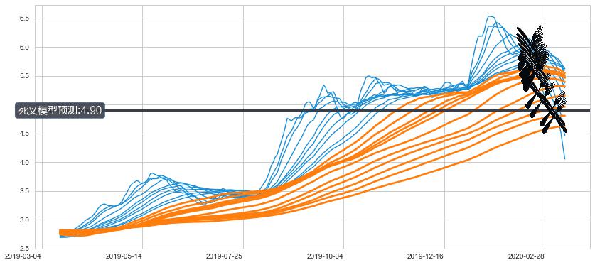 ➣ 160小时均线于(2020-02-26: 5.07)形成【死叉】基于【死叉历史模型】预测死叉后最低波谷价格: 4.59, 死叉后最低价格3.640,已经下跌超出预测最低波谷价格, 预期反弹