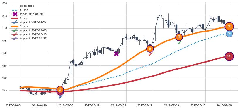 ➢ 发现最优均线组合: 30 , 50 , 95