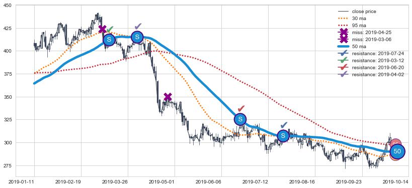 ➣ 90小时均线于(2019-10-09: 297.49)形成【金叉】基于【金叉历史模型】预测金叉后最高波峰价格: 346.74, 金叉后最高价格494.43,已经上涨超出预测最高波峰价格, 预期回调