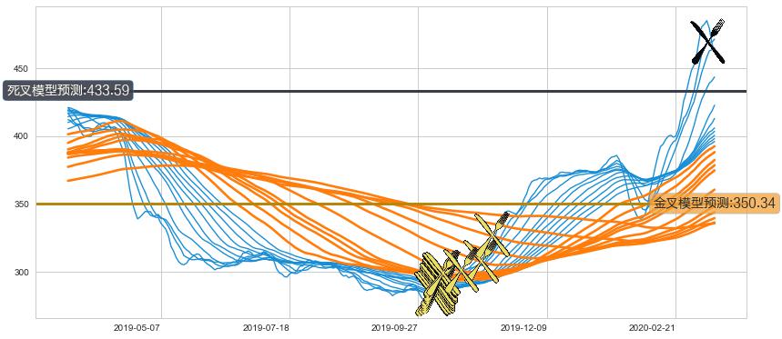 ➢ 60小时均线于(2019-10-09: 292.70)形成【金叉】基于【金叉历史模型】预测金叉后最高波峰价格: 341.01, 金叉后最高价格494.43,已经上涨超出预测最高波峰价格, 预期回调
