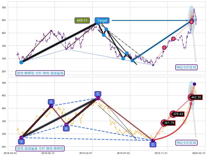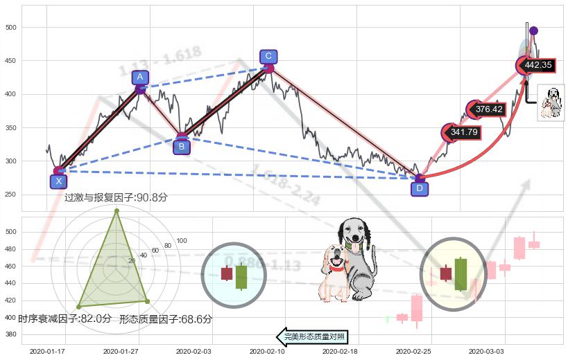 ➣ 已完成【鲨鱼】形态起点X: 2018-05-09, 终点D: 2019-09-27, 共350交易日