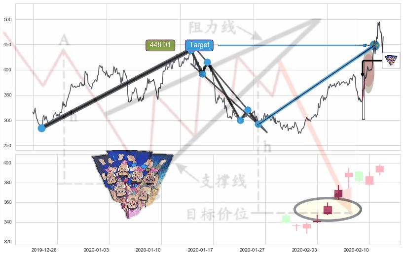 ➣ 2020-02-25到达第❸价格目标位置442.35