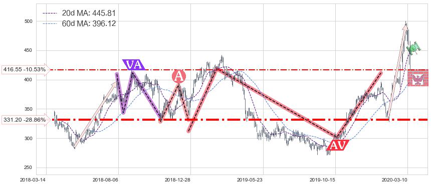 ♘ 支撑价格位416.55,可信任强度49.82%,距离最后交易2020-03-13形成的收盘价格465.55相差 -10.53%