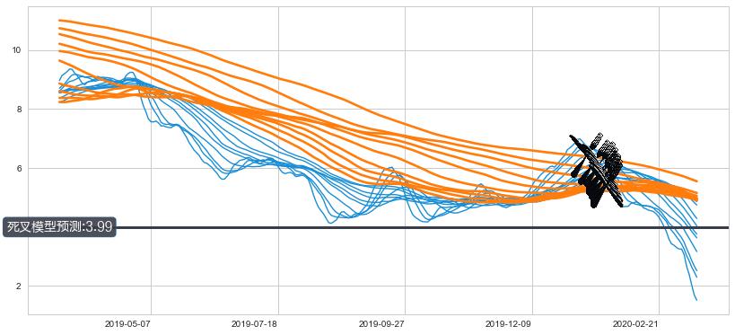 ➣ 40小时均线于(2020-01-17: 5.92)形成【死叉】基于【死叉历史模型】预测死叉后最低波谷价格: 4.59, 死叉后最低价格1.3400,已经下跌超出预测最低波谷价格, 预期反弹