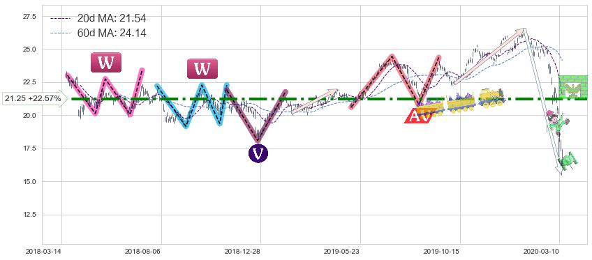 2019-08-16: 第一阻力位21.25有效抑制了下跌浪,成功阻止了价格的继续下跌。