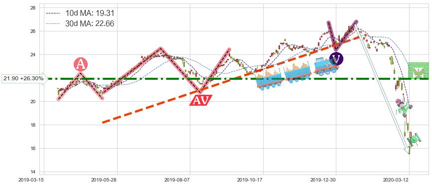 ♞ 10日均线:19.31,30日均线:22.66→ 快线<慢线