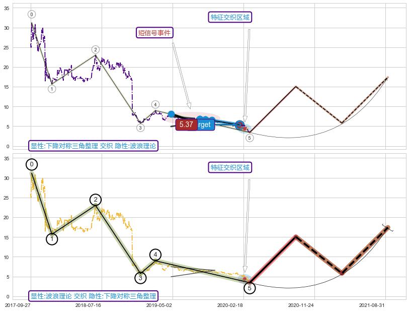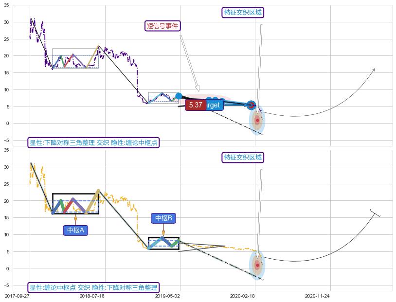 ➢ 下降对称三角整理属【短级别信号事件】缠论中枢点属【长级别信号事件】长短周期组合信号事件, 短长事件长度比18.99%