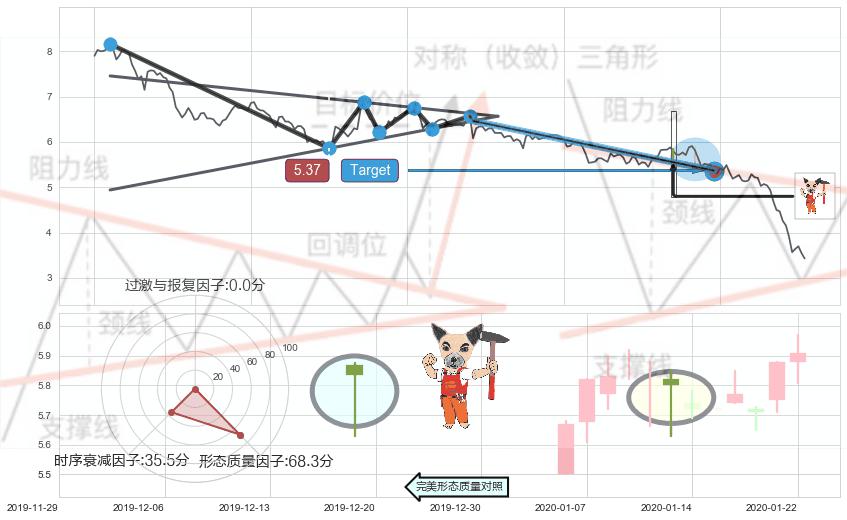 ➢ 锤头线(锤子线) 🔜 下降对称三角整理target支撑拐点上涨 综合量化分数:50.32 【中性】