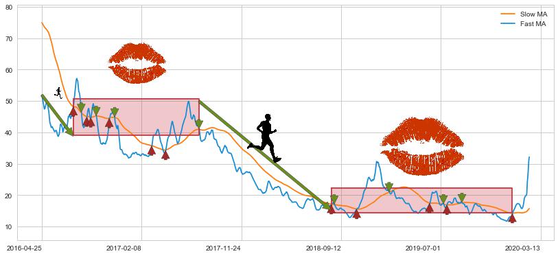 2017-07-26至2018-08-14 慢线与快线呈空头排列, 慢线与快线接触少,无缠绕