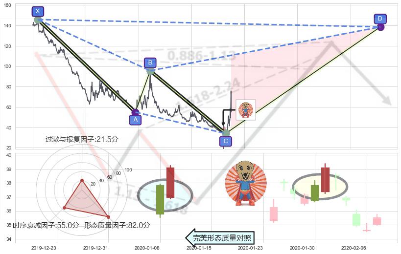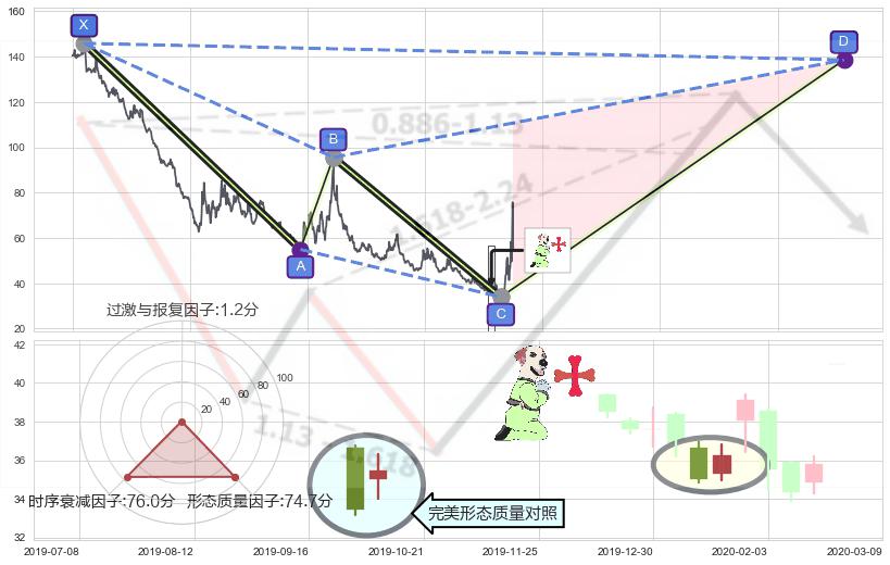 ➢ 曙光初现形态 🔜 谐波鲨鱼下沉击穿c上涨拐点 综合量化分数:59.22 【偏多】