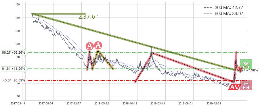 ♘ 支撑价格位43.84,可信任强度53.69%,距离最后交易2020-03-13形成的收盘价格55.21相差 -20.59%