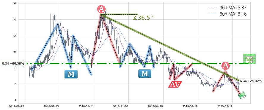 ♘ 阻力价格位8.54,可信任强度98.76%,距离最后交易2020-03-13形成的收盘价格5.13相差 +66.38%