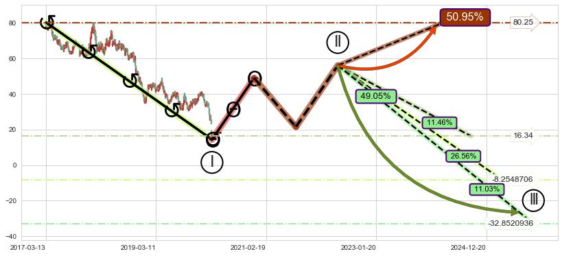 ➣ 大趋势循环浪继续向下概率49.05%