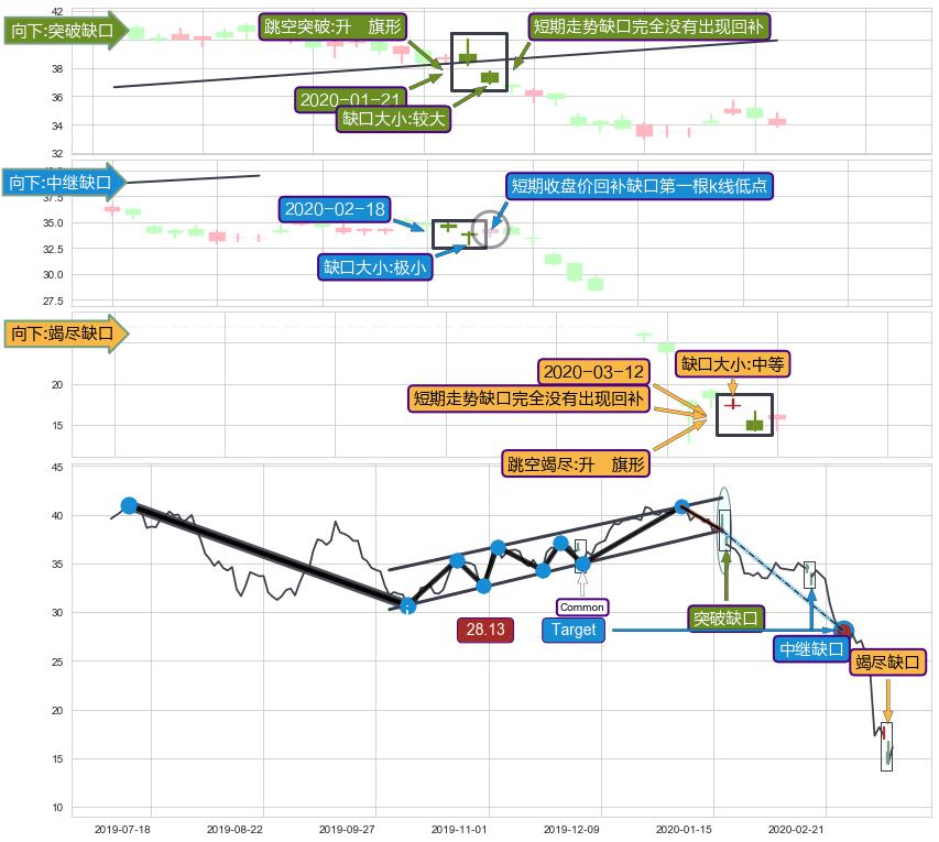 ➣ 中继缺口在突破缺口后再次向下跳空,趋势得到加固