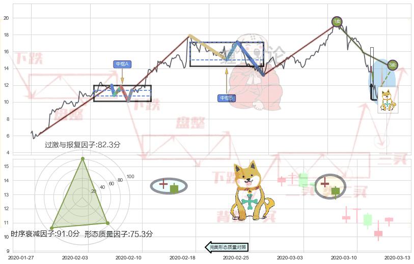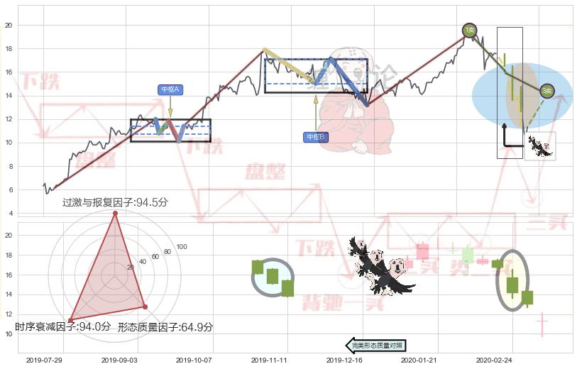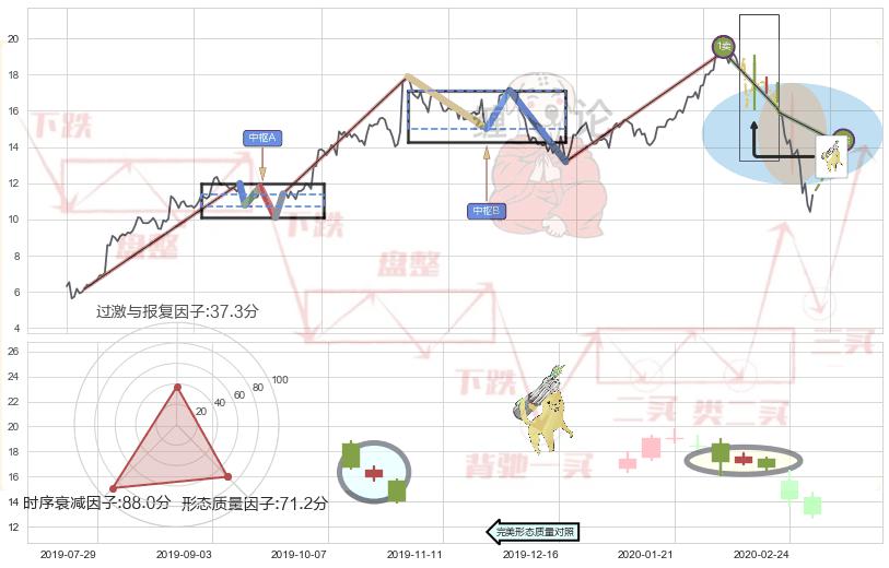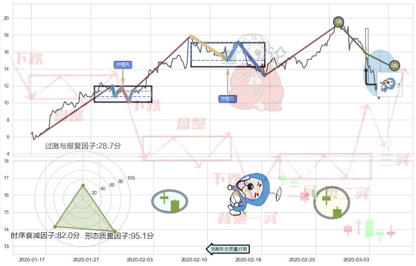 ➢ 🕰 价格走势在2020-02-18至2020-03-02期间形成三只乌鸦,残存影响值:-7.57