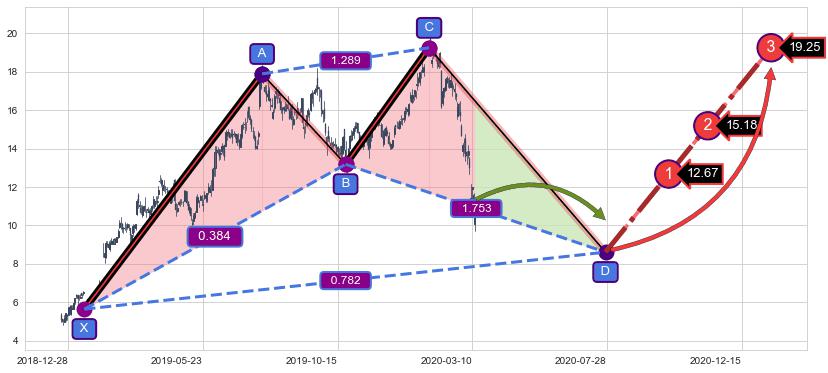 ➣ AI预测: 假定反转启动后, 第❸目标位置(2021-01-14, 19.25)