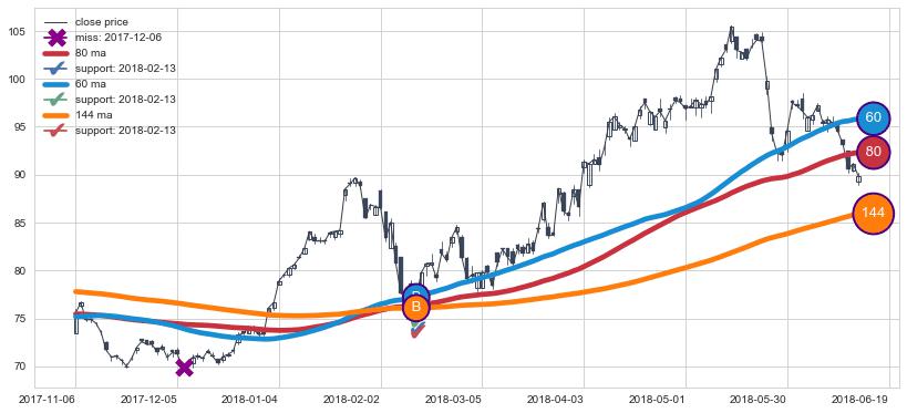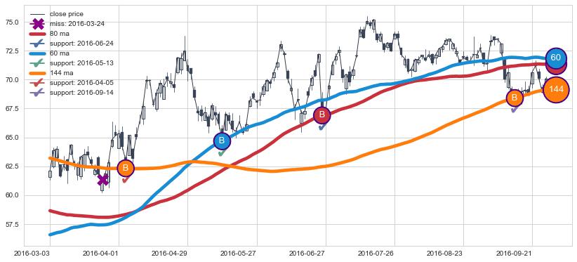 ➢ 最优均线组合共正确确认支撑阻力信号15处,正确确认率 62.50%