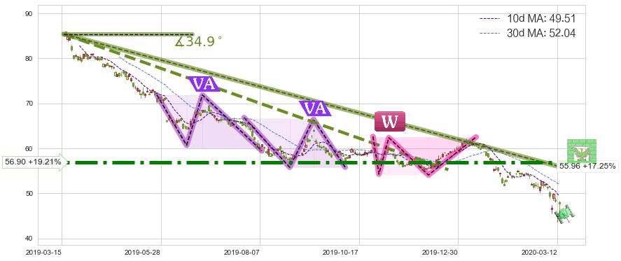 ♘ 阻力价格位56.90,可信任强度85.89%,距离最后交易2020-03-13形成的收盘价格47.73相差 +19.21%