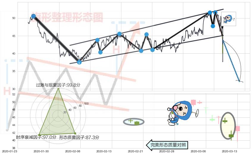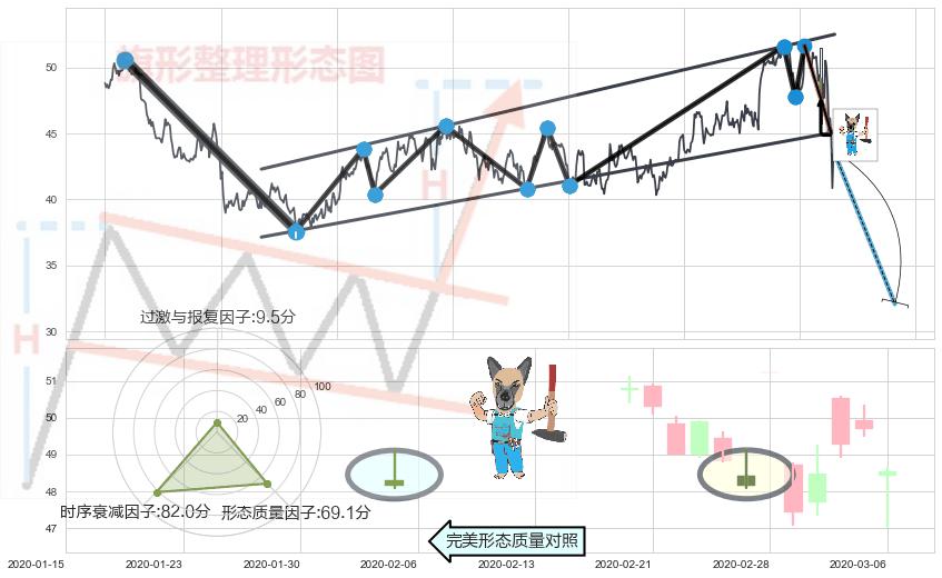 ➢ 🕰 价格走势在2020-03-06至2020-03-09期间形成吊颈线(上吊线),残存影响值:-4.36