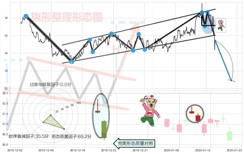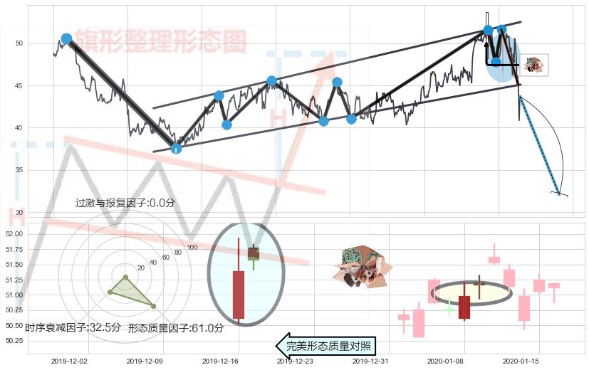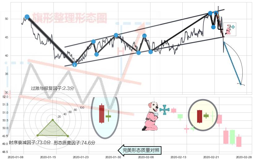 ➢ 顶部尽头线(下山虎) 🔜 升旗形支撑破位转换阻力下跌 综合量化分数:47.53 【中性】