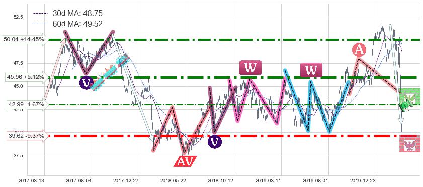♘ 支撑价格位39.62,可信任强度94.19%,距离最后交易2020-03-13形成的收盘价格43.72相差 -9.37%