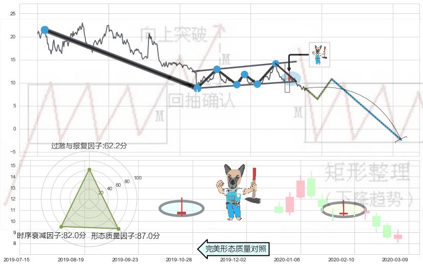 从2017-10-16至2020-03-13,共包含606个交易日,阶段股价下跌-169.02%,阶段股价变动位移路程比: 1 : 9,下跌趋势角度: 44.0