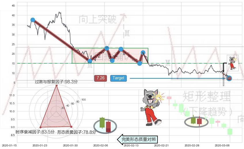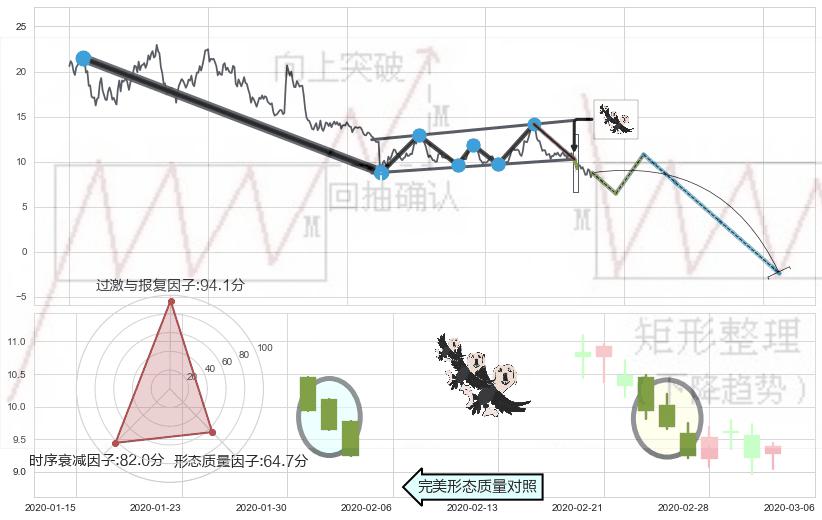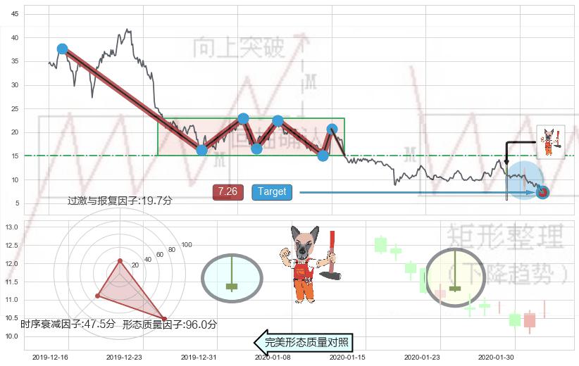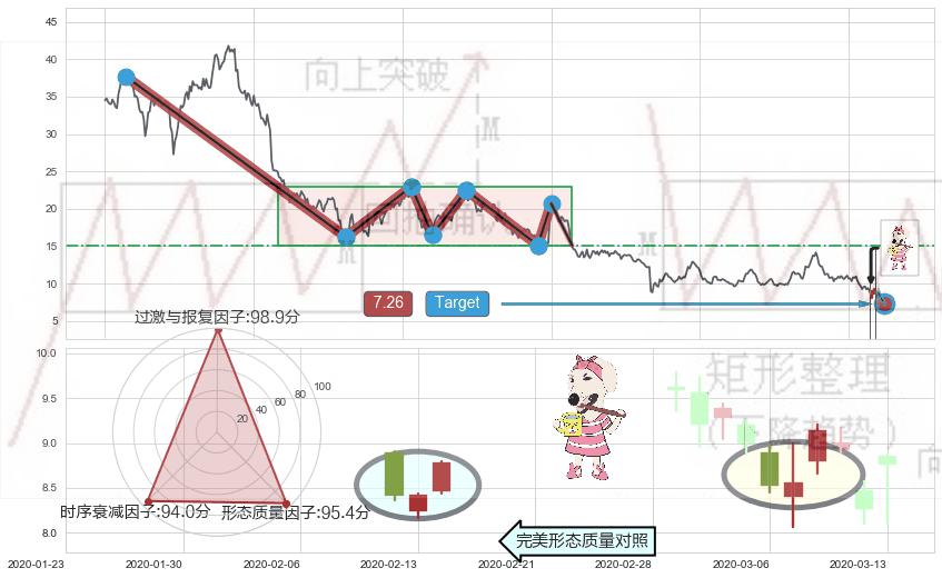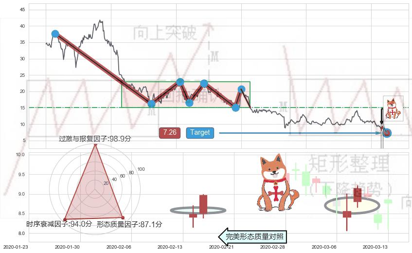 ➢ 看涨(低位)倒锤头线 🔜 下跌矩形整理临近target支撑拐点上涨 综合量化分数:51.67 【中性】