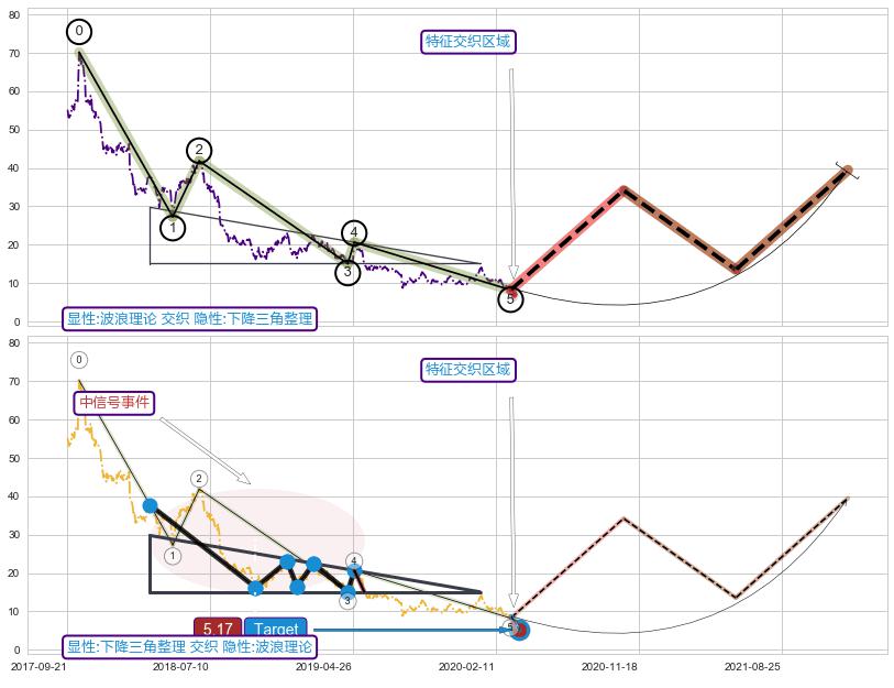 ➢ 下降三角整理属【中级别信号事件】波浪理论属【长级别信号事件】中长周期组合信号事件,中长事件长度比49.67%