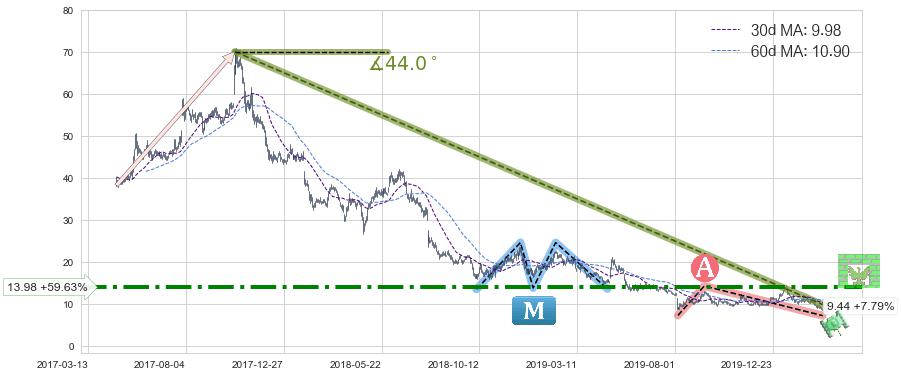 ♘ 阻力价格位13.98,可信任强度83.96%,距离最后交易2020-03-13形成的收盘价格8.76相差 +59.63%