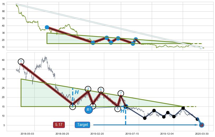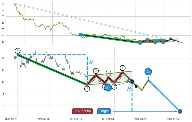 ➣ 下降三角整理:猜想下跌target达成后 → 上涨 → 机会信号 → 大趋势均值回复