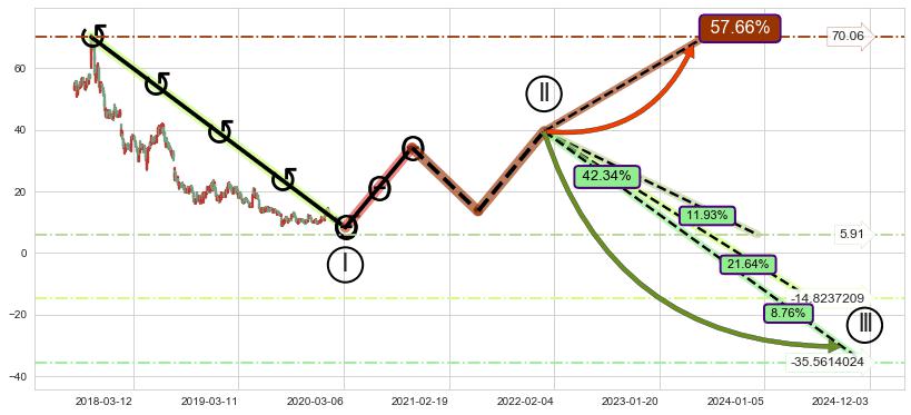 ➣ 循环浪继续向下【平均值】位置(2024-06-10, -14.8237209),匹配聚类样本比例51.12%, 可能性概率21.64%