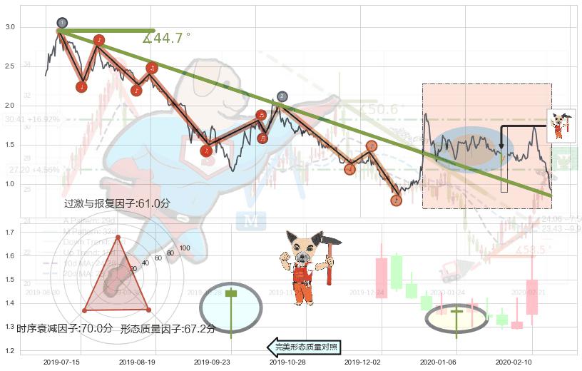 从2018-05-02至2019-02-21,共包含203个交易日,阶段股价下跌-39.62%,阶段股价变动位移路程比: 1 : 11,下跌趋势角度: 57.8