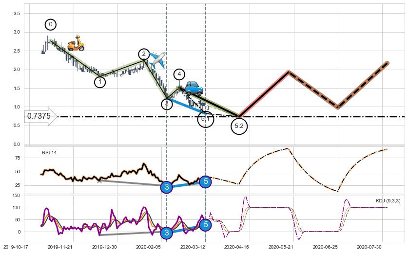 ➢ 5.2: 预测第5浪最终位置(2020-04-08, 0.7375)