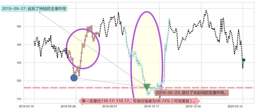 ♘ 支撑价格位116.17,可信任强度56.74%,距离最后交易2020-03-13形成的收盘价格131.56相差 -11.70%