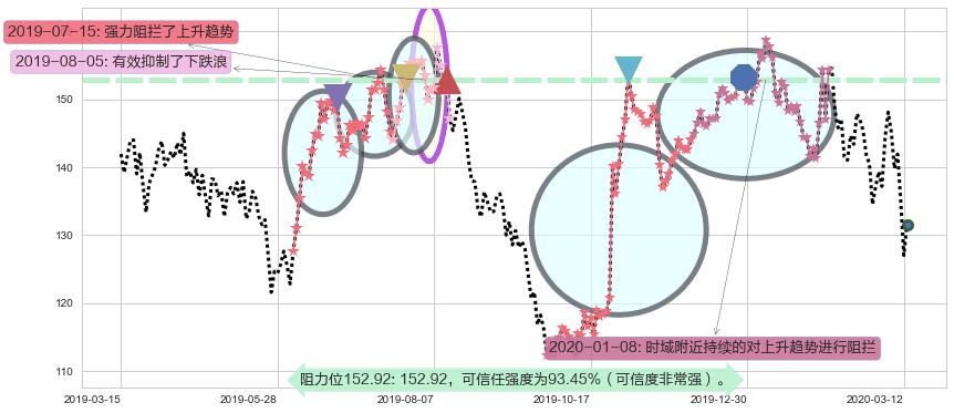 ♘ 阻力价格位152.92,可信任强度93.45%,距离最后交易2020-03-13形成的收盘价格131.56相差 +16.24%