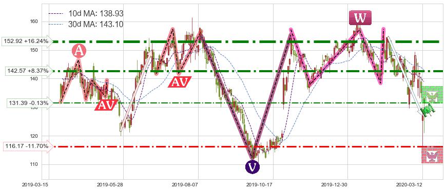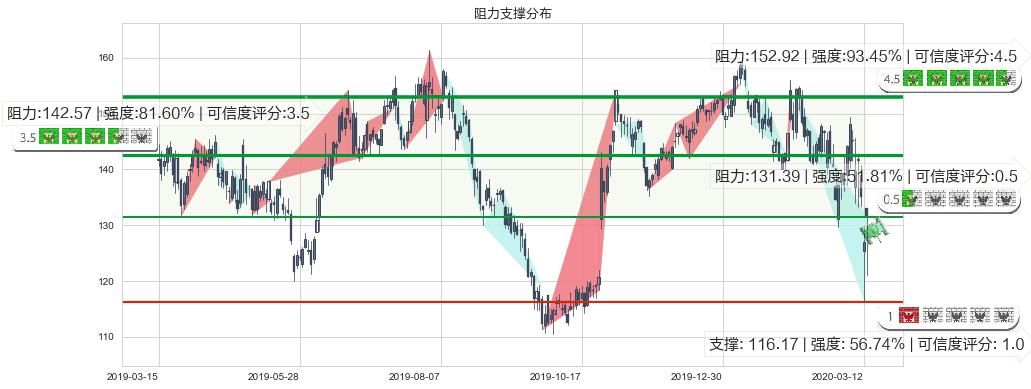 ♘ 阻力价格位142.57,可信任强度81.60%,距离最后交易2020-03-13形成的收盘价格131.56相差 +8.37%