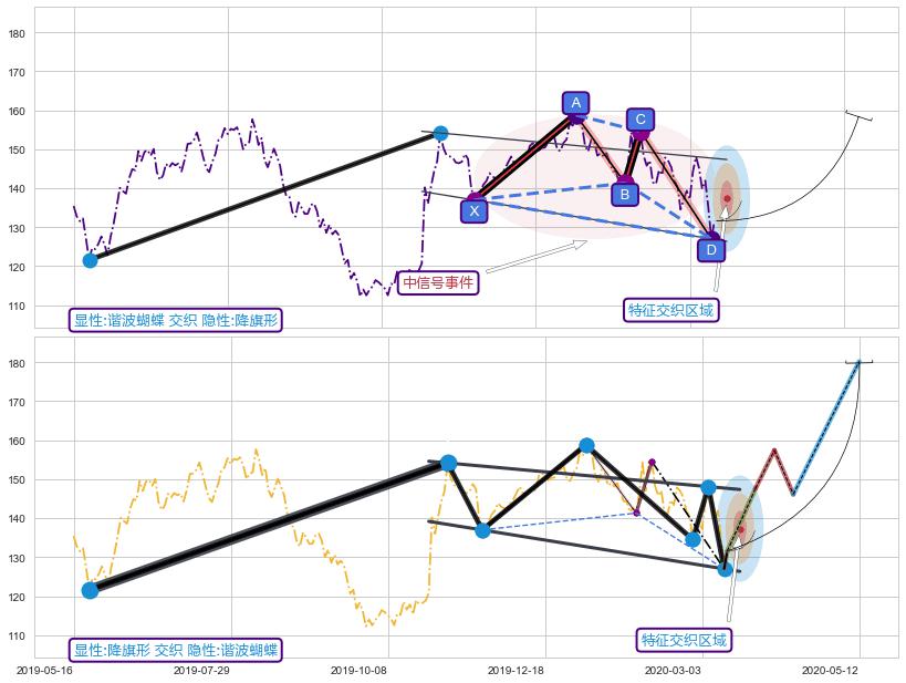 ➢ 谐波蝴蝶属【中级别信号事件】降旗形属【长级别信号事件】中长周期组合信号事件,中长事件长度比38.24%