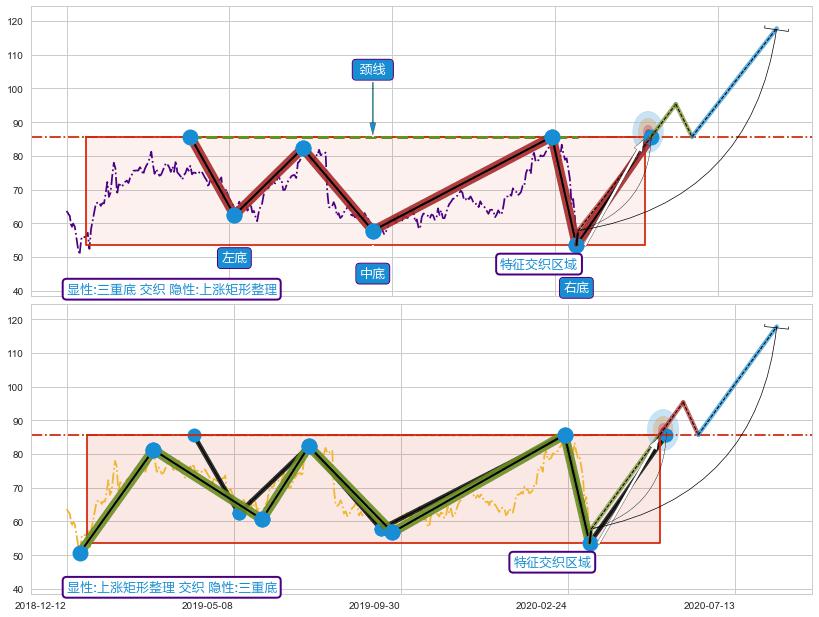 ➢ 三重底与上涨矩形整理信号事件周期长度级别相同,同周期信号事件