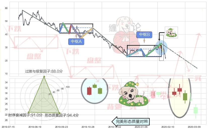 ➢ 黄昏之星(夜星) 🔜 缠论中枢点破位中枢B支撑下拉 综合量化分数:44.78 【偏空】