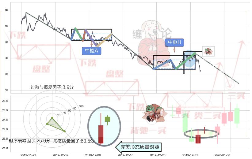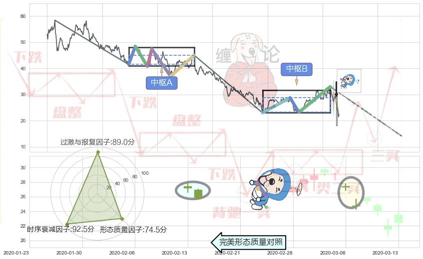 ➢ 下跌螺旋桨 🔜 缠论中枢点破位中枢B支撑下拉 综合量化分数:43.44 【偏空】