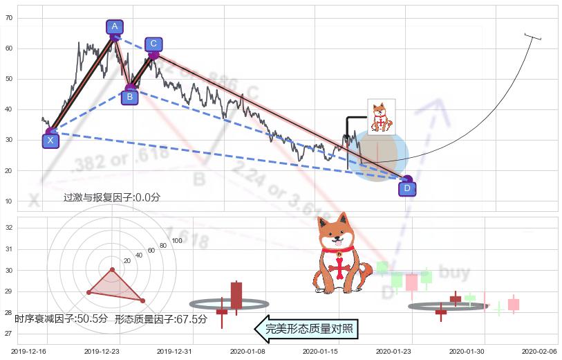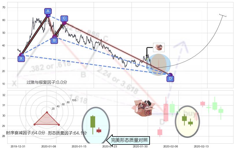➢ 上涨孤独十字星 🔜 谐波螃蟹临近d拐点上涨支撑 综合量化分数:51.90 【中性】