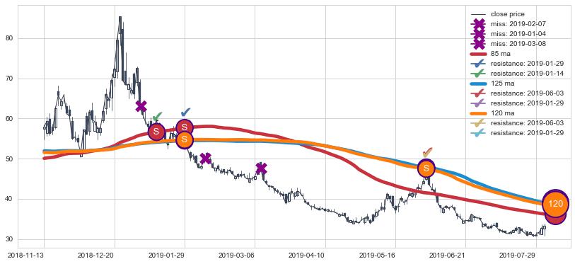 ➢ 最优均线组合共正确确认支撑阻力信号8处,正确确认率 57.14%