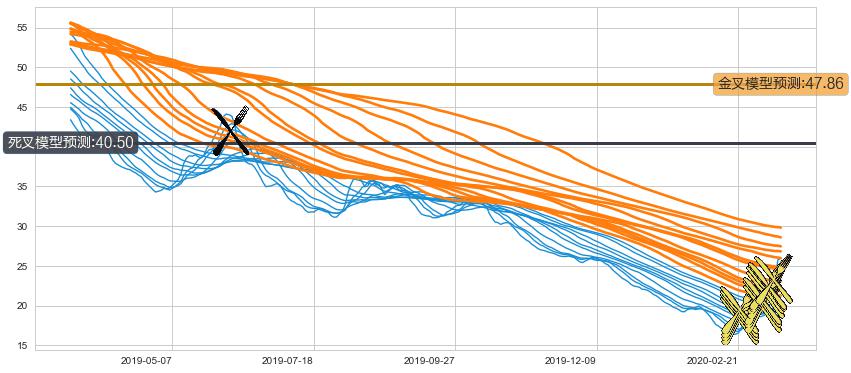 ➣ 40小时均线于(2020-02-21: 19.40)形成【金叉】基于【金叉历史模型】预测金叉后最高波峰价格: 43.51, 金叉后最高价格32.27,尚未达到预测最高波峰价格, 预期继续上涨