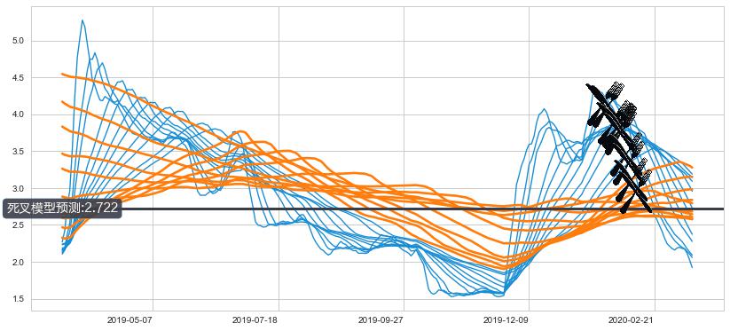➣ 45小时均线于(2020-01-31: 3.739)形成【死叉】基于【死叉历史模型】预测死叉后最低波谷价格: 3.090, 死叉后最低价格1.7200,已经下跌超出预测最低波谷价格, 预期反弹
