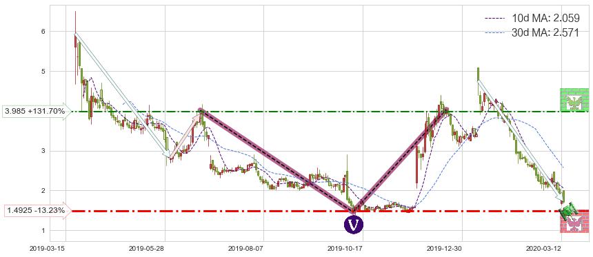 ♘ 阻力价格位3.985,可信任强度53.93%,距离最后交易2020-03-13形成的收盘价格1.7200相差 +131.70%