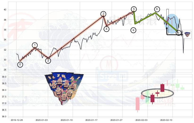 ➣ 波浪理论:猜想达到c点后小回调终止反转上涨 → 上涨 → 【拐点】临近 → 阶段均值回复结束后继续大周期趋势跟踪