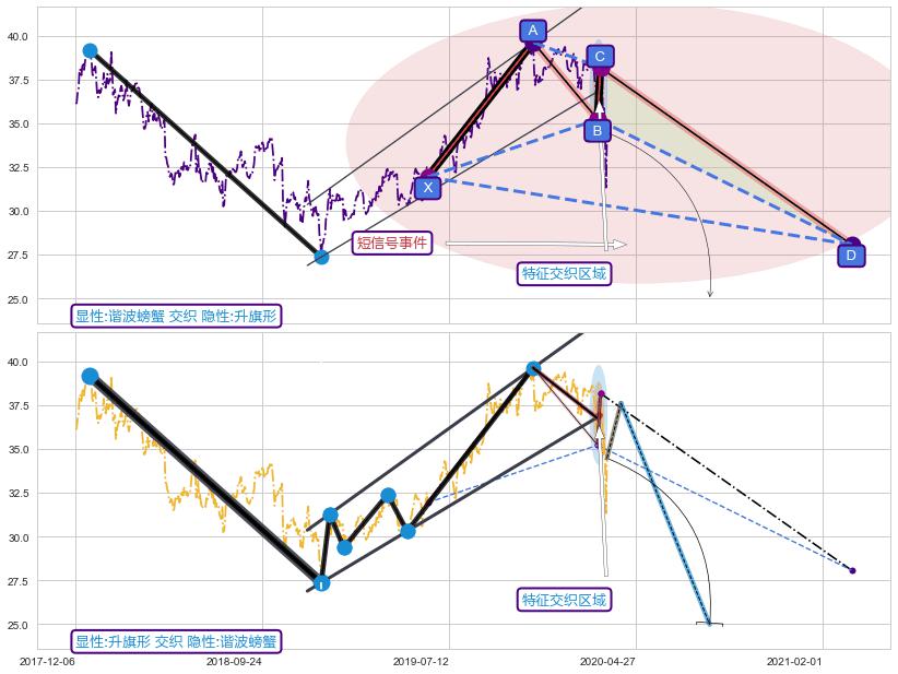 ➢ 谐波螃蟹属【短级别信号事件】升旗形属【长级别信号事件】长短周期组合信号事件, 短长事件长度比35.48%