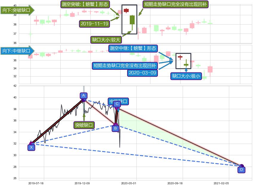 ➢ 【螃蟹】形态 🔜 中继缺口 🔜 突破缺口 综合量化分数:44.69 【偏空】